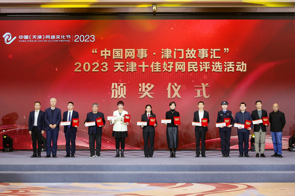 新华网天津1月24日电(张博)22日,“中国网事·津门故事汇”2023十大网络感动人物、十佳好网民颁奖典礼在中国(天津)网络文化节的闭幕式上举行。经过层层选拔,20件优秀人物(团体)事迹获得表彰。他们的事迹通过网络传播,感动了无数网友,展现了天津网民的良好形象和精神风貌。这些优秀人物用自己的实际行动践行了社会主义核心价值观,传递正能量,弘扬网络文明。