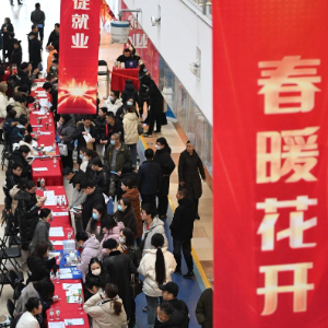 这是2月29日拍摄的天津市东丽区线下招聘会现场。新华社记者 孙凡越 摄