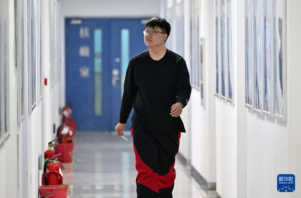佟泽栋在南开大学化学学院的实验室内前行(4月26日摄)。新华社记者 李然 摄