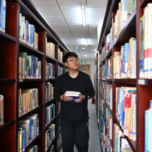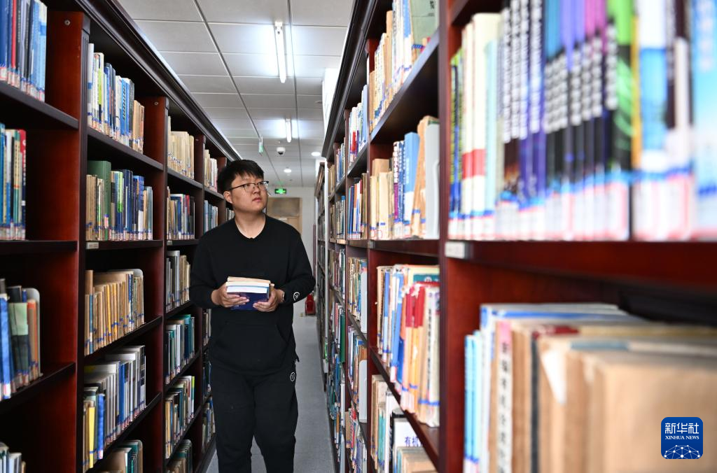 佟泽栋在南开大学图书馆借阅专业书籍(5月3日摄)。新华社记者 李然 摄