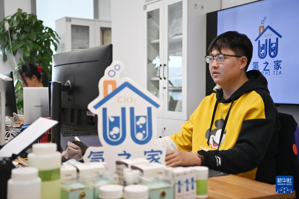 2020年,还在南开大学读本科的佟泽栋在老师的指导下,联合几位室友开始二氧化氯气体消毒技术方向的研究。依托南开大学化学学院,佟泽栋用数月的时间组建团队并掌握二氧化氯两步缓释消毒技术。