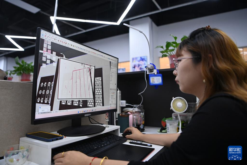 牛富佳在天津市南开区悦动广场的办公地上班(5月17日摄)。今年24岁的牛富佳小时候因车祸失去了左腿,她现在是创美助残基地的动漫设计师。牛富佳曾在全国第七届残疾人职业技能大赛上获优秀技能奖,她在工作中乐观开朗,是基地的优秀员工。