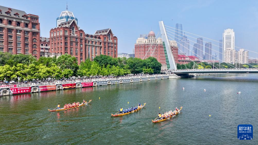 这是6月10日拍摄的海河龙舟赛比赛现场(无人机照片)。新华社记者 孙凡越 摄pagebreak