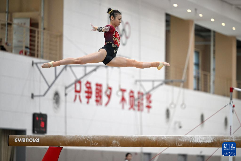 6月12日,中国体操队队员杜思雨在平衡木比赛中。她以总分51.732的成绩获得女子个人全能第五名。新华社记者 赵子硕 摄