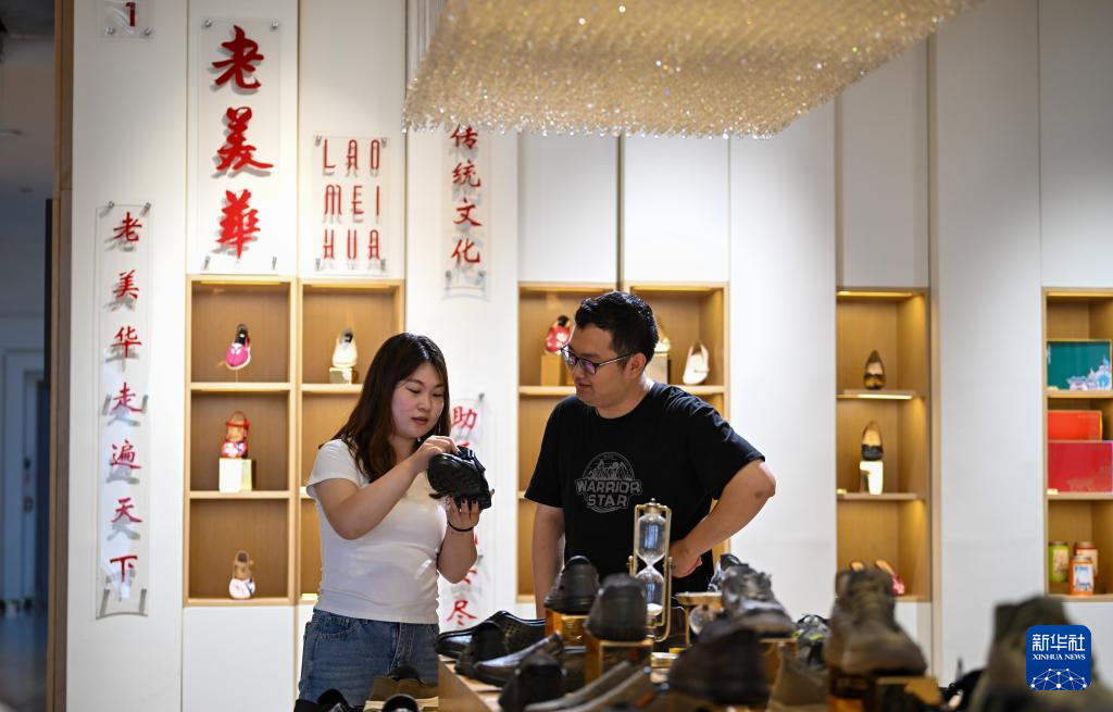 顾客在老美华旗舰店选购鞋品(8月7日摄)。新华社记者 孙凡越 摄pagebreak