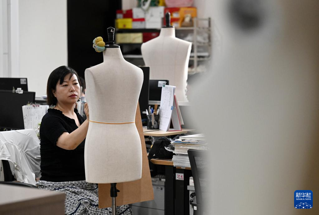 老美华开发部门工作人员在设计服装(8月7日摄)。新华社记者 赵子硕 摄