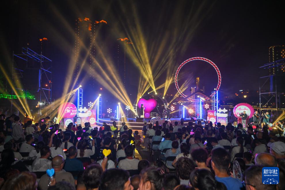 8月10日,在海河亲水平台上,演员为市民游客演唱歌曲。新华社记者 孙凡越 摄pagebreak