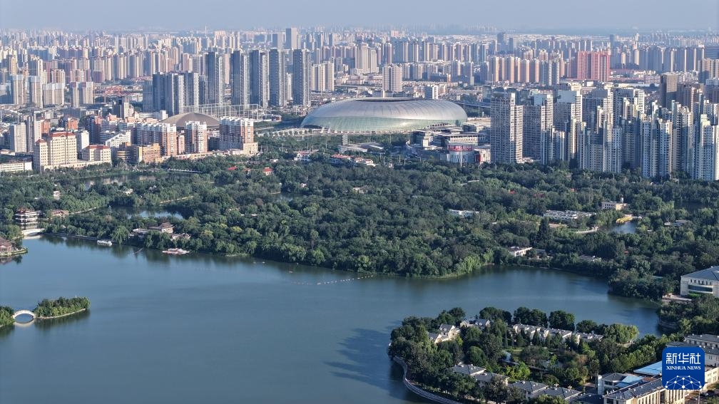 这是8月27日拍摄的天津市水上公园一景(无人机照片)。新华社记者 李然 摄pagebreak