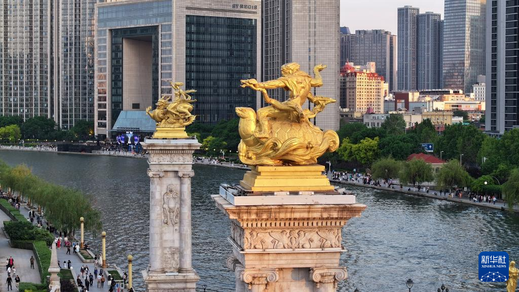 这是5月1日拍摄的天津市北安桥青龙、玄武雕像(无人机照片)。新华社记者 李然 摄pagebreak
