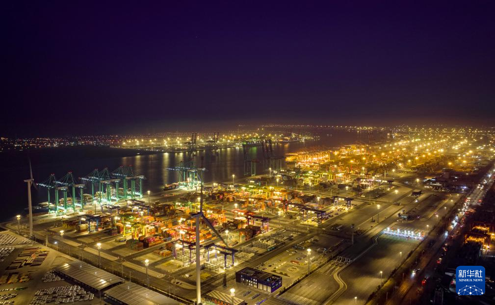 这是2月3日拍摄的天津港集装箱码头夜景(无人机照片)。新华社记者 赵子硕 摄pagebreak