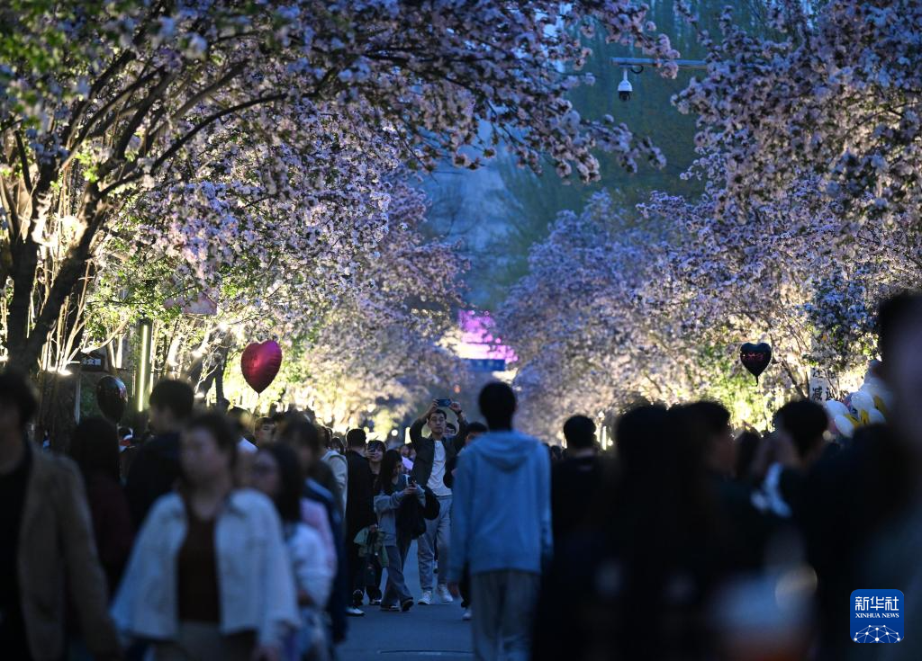 市民和游客在天津市和平区五大道欣赏海棠花(4月14日摄)。新华社记者 赵子硕 摄pagebreak
