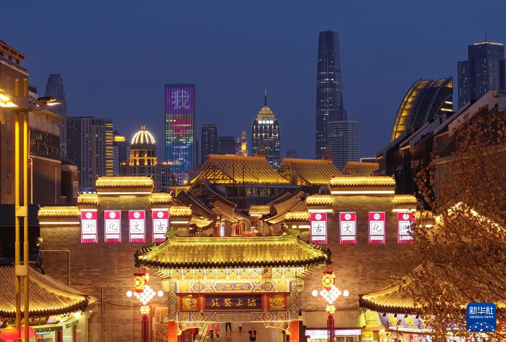 这是2月1日拍摄的天津古文化街一景(无人机照片)。新华社记者 赵子硕 摄pagebreak