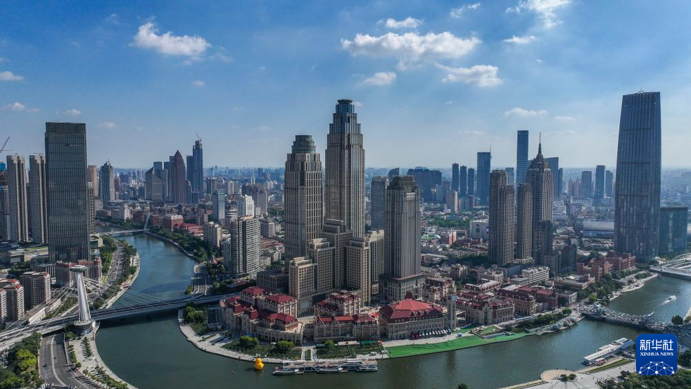 这是8月22日拍摄的天津中心城区海河沿线城市风光(无人机照片)。新华社记者 孙凡越 摄pagebreak