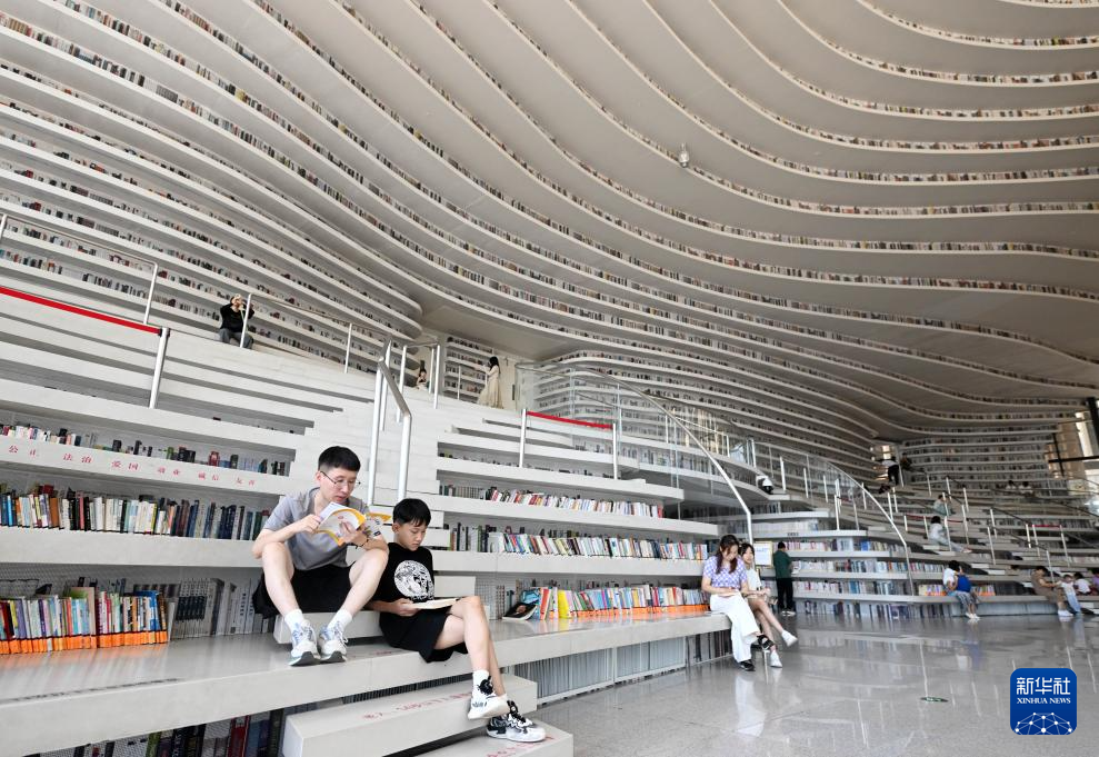 市民在天津滨海新区图书馆内阅读(8月27日摄)。新华社记者 赵子硕 摄pagebreak