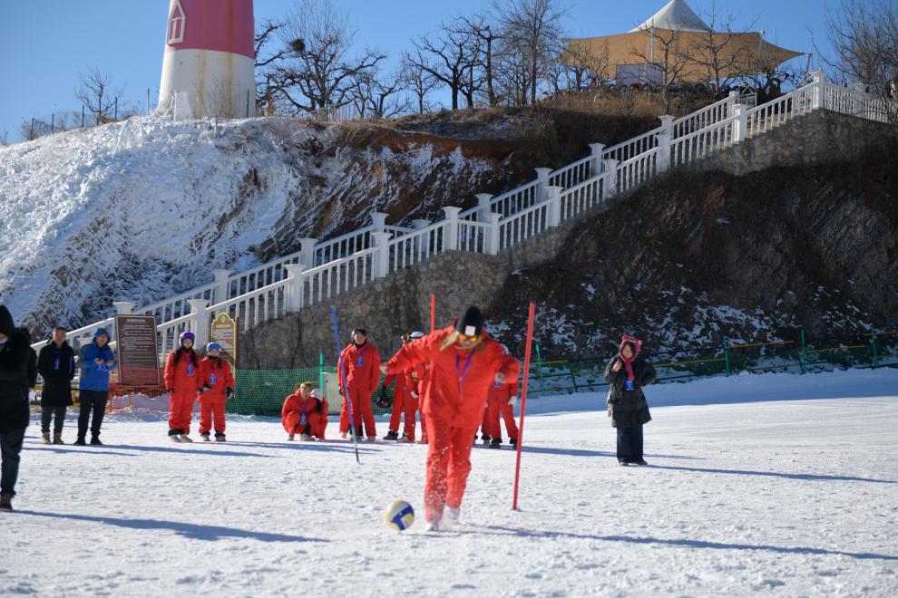 在随后举行的京津冀雪上运动会上,来自北京市平谷区、天津市蓟州区和河北省兴隆县的6支运动员代表队围绕雪圈保龄球、雪地竞速搬运、雪地足球射门、雪地拔河等比赛项目展开激烈角逐。