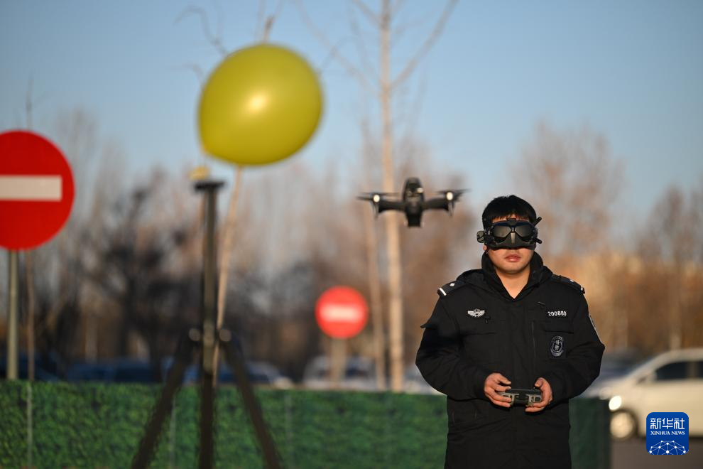 1月8日,在天津市公安局特警总队,特警四支队队员驾驶穿越机训练。新华社记者 孙凡越 摄pagebreak