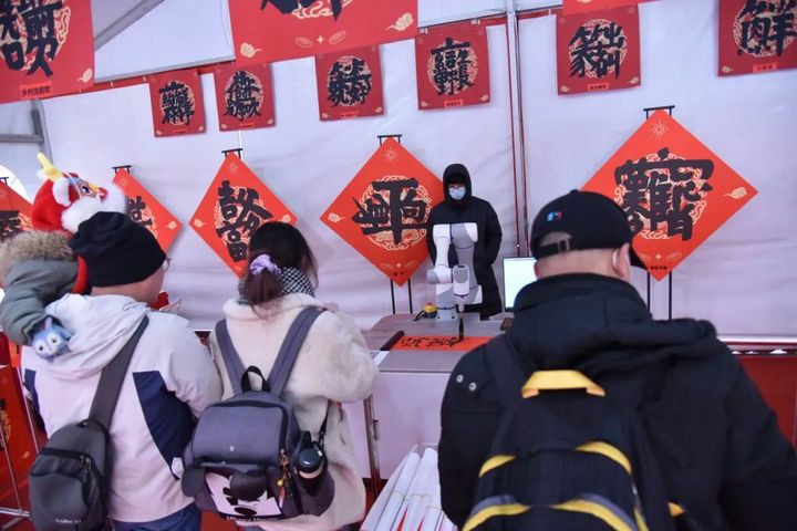 科技融合,时尚新潮。将传统习俗与现代科技巧妙结合,开展AI智能创作春联及机器人书写福字送祝福活动。由天津美术学院院长邱志杰设计,以意式风情区和蛇年元素为依托,用机器人手臂书写春联送祝福,将传统春节习俗与AI技术相融合,让游客直观体验对联创作与书写的全过程,感受新春祝福。