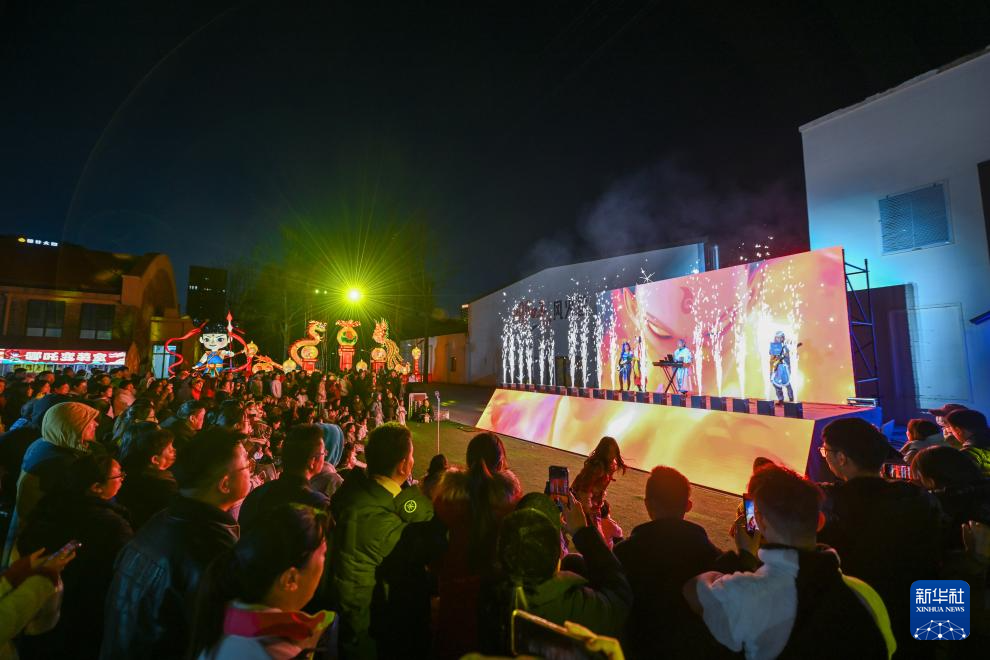 游客在天津哪吒小镇观看演出(3月16日摄)。新华社记者 孙凡越 摄pagebreak