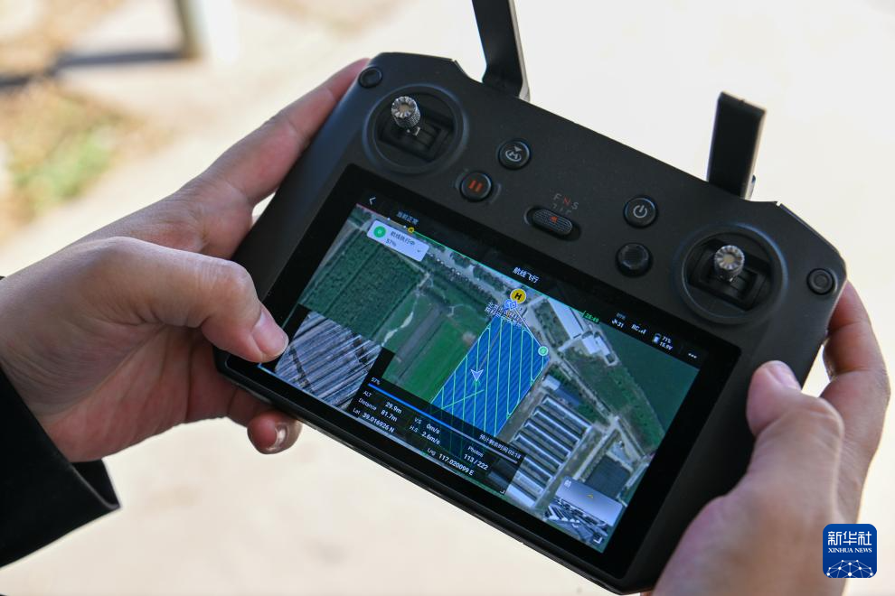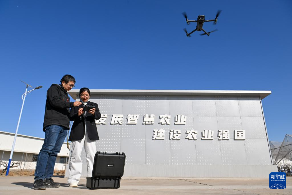 在农芯科技(天津)有限责任公司智慧农业园区,科研人员通过搭载多光谱相机的无人机开展建图作业(3月20日摄)。新华社记者 孙凡越 摄pagebreak