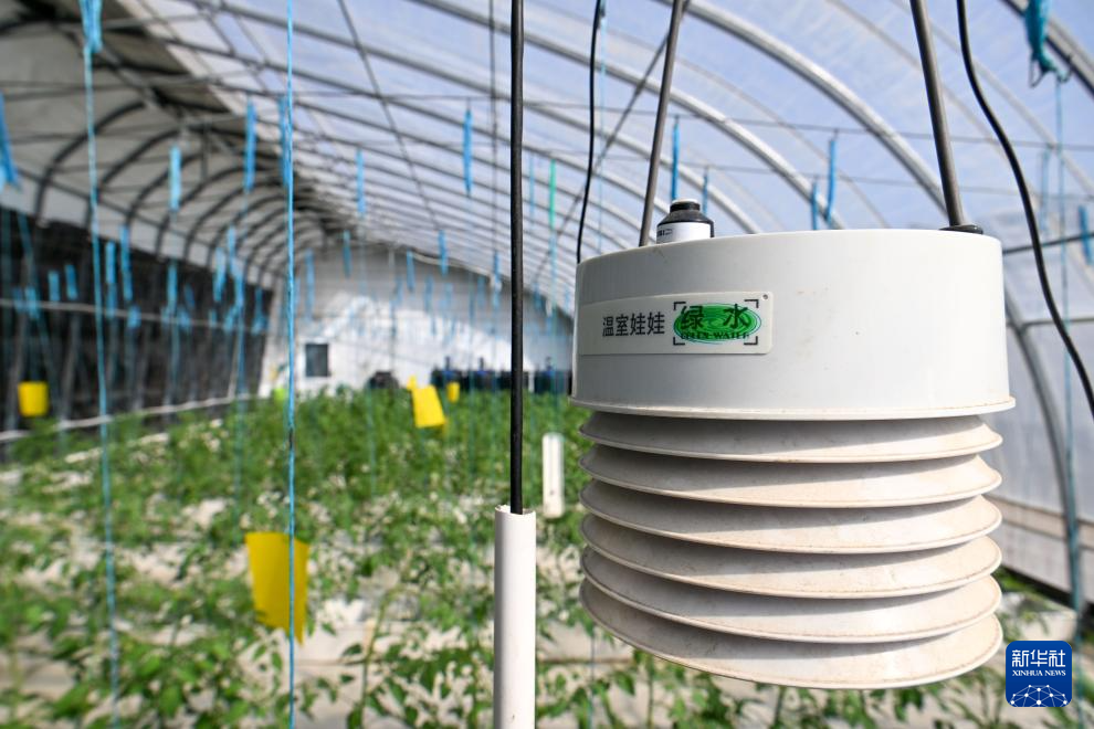 这是3月20日在农芯科技(天津)有限责任公司智慧农业园区智能温室内拍摄的用于监测环境数值的捕捉器。新华社记者 孙凡越 摄