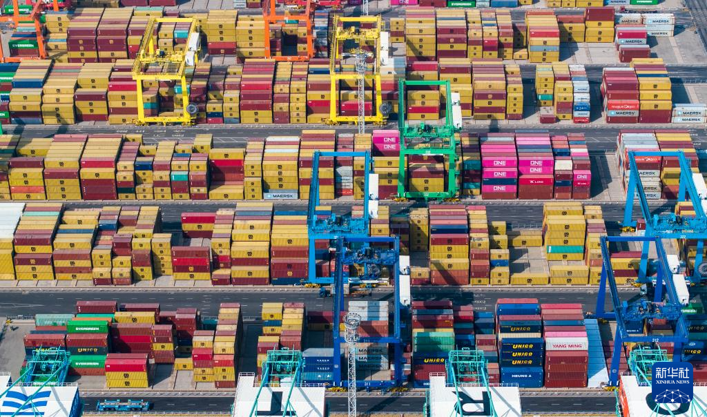 这是4月8日拍摄的天津港集装箱码头堆场(无人机照片)。新华社记者 赵子硕 摄pagebreak