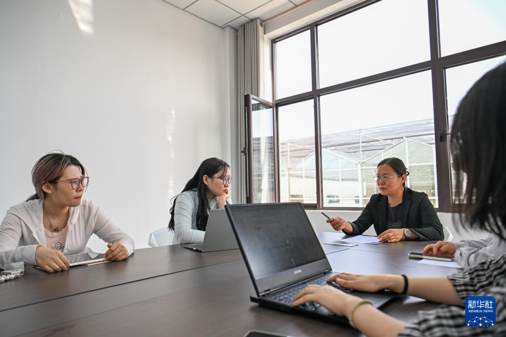 在天津武清小浆果科技小院,王丽娟(右二)为学生们布置实验计划(4月24日摄)。新华社记者 孙凡越 摄pagebreak