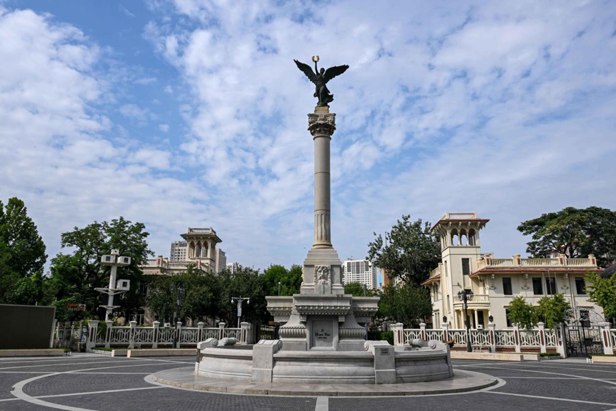 天津意式风情区内拍摄的意式雕塑和建筑群。新华社记者孙凡越 摄