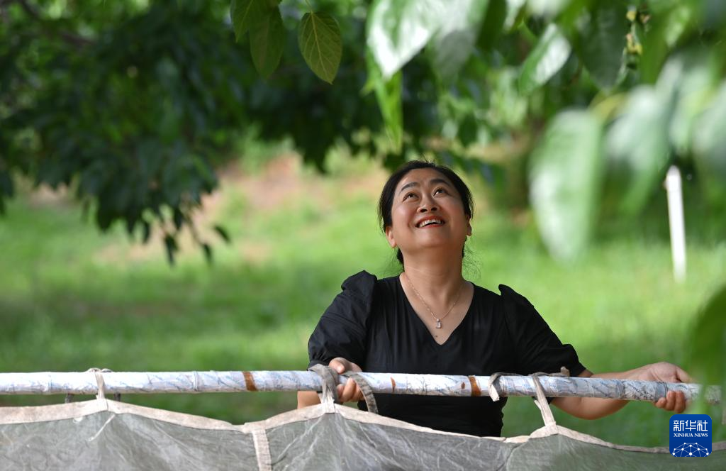 天津市蓟州区别山镇的农户手拿打棍收获白桑葚(6月6日摄)。新华社记者 李然 摄pagebreak
