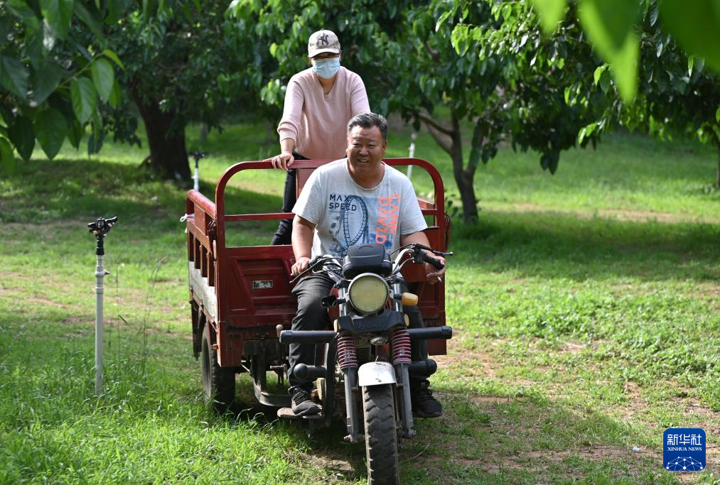 在天津市蓟州区别山镇,农户驾车去收获桑葚(6月6日摄)。新华社记者 李然 摄