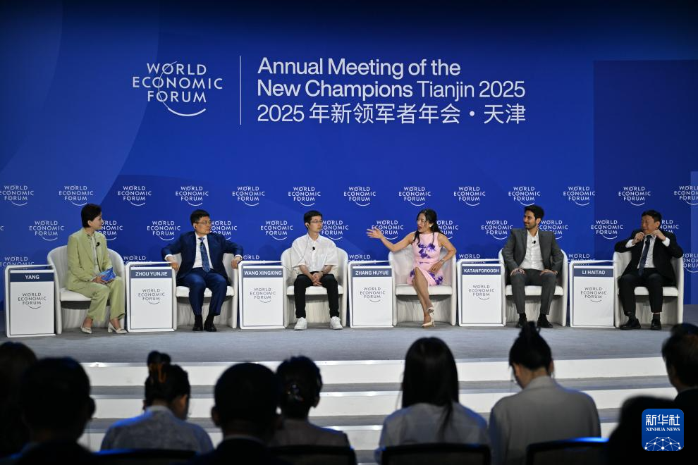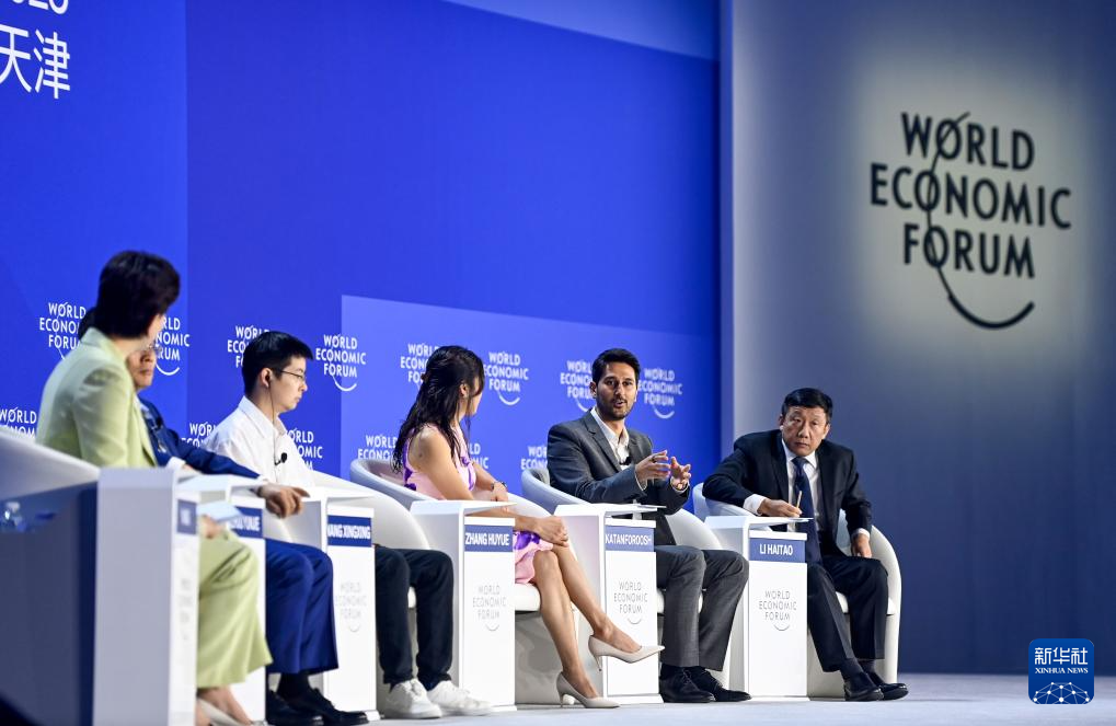 6月26日,在国家会展中心(天津),Workera创始人兼首席执行官卡坦福鲁什(右二)在分论坛发言。新华社记者 赵子硕 摄