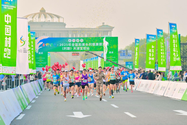 新华网天津9月14日电 大地流彩·2025年全国和美乡村健康跑活动(村跑)天津宝坻站14日在天津市宝坻区周良街道开跑,来自全国29个省区市的3000余名跑步爱好者和农民运动员参与。