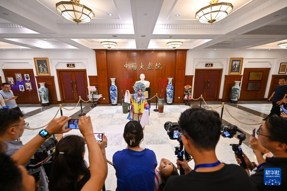 演员在位于天津的中国大戏院为观众带来戏曲快闪表演(10月1日摄)。新华社记者 孙凡越 摄