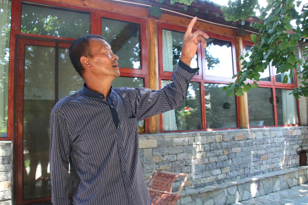 “石头垒砌要越平整才能越好看,这是细活;垒得一高一低的,那是糙活。细活还是糙活,别人一眼就能看出来。”周志华拿起屋子角落里的一块石料说。他在民宿庭院的两棵银杏树旁边,用石头造了一个烧烤炉子和一口井。为了造出炉墙、环形石凳、石井的弯曲弧度,周志华花费了大量的心血和时间,全靠细心的丈量和耐心的敲磨。
