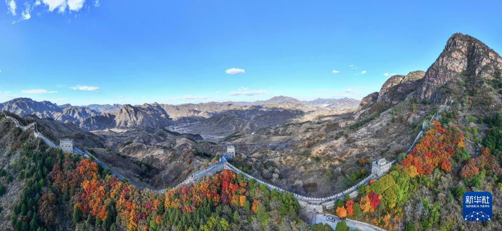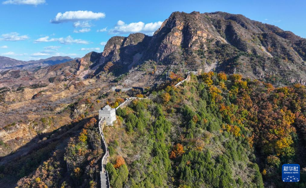 11月1日拍摄的黄崖关长城秋景(无人机全景照片)。新华社记者 陈晔华 摄