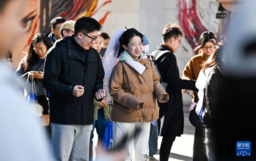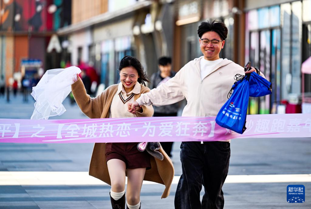 11月2日,参加活动的一对情侣在冲刺。新华社记者 赵子硕 摄pagebreak