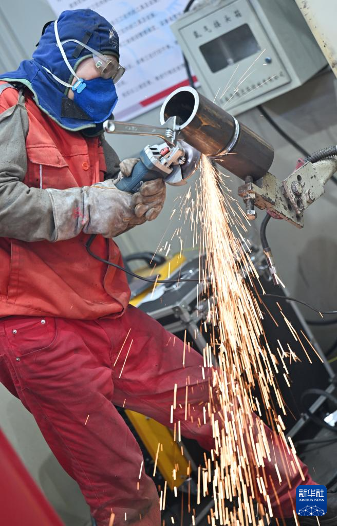 12月4日,选手在比赛中打磨焊口。新华社记者 李然 摄pagebreak