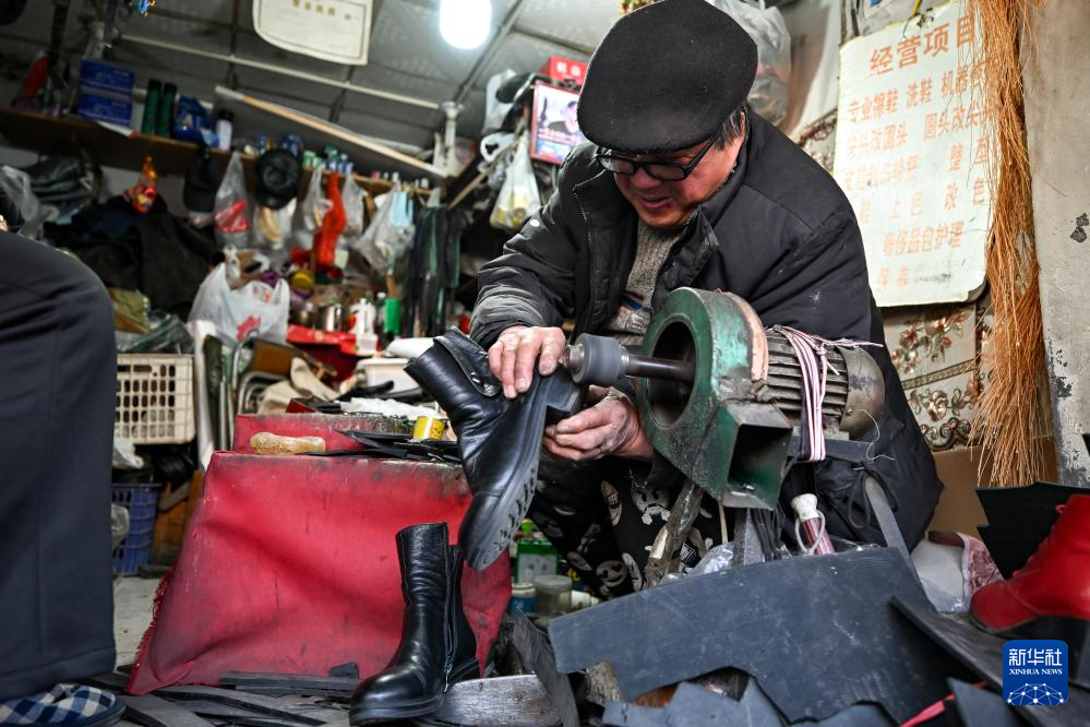 12月9日,商户在为顾客修鞋。新华社记者 张铖 摄pagebreak