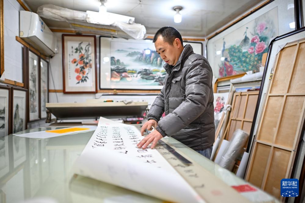 12月9日,商户在装裱书法作品。新华社记者 张铖 摄pagebreak