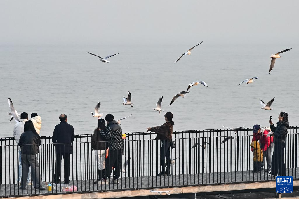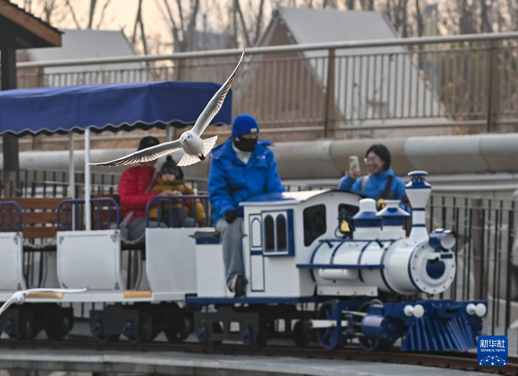 冬日,在天津市滨海新区的海贝乐园,成群的海鸥在此聚集栖息,吸引众多游人前来喂食、赏趣。