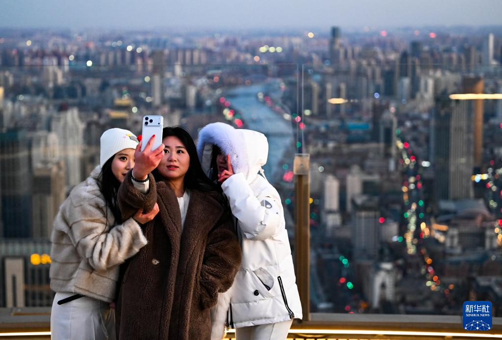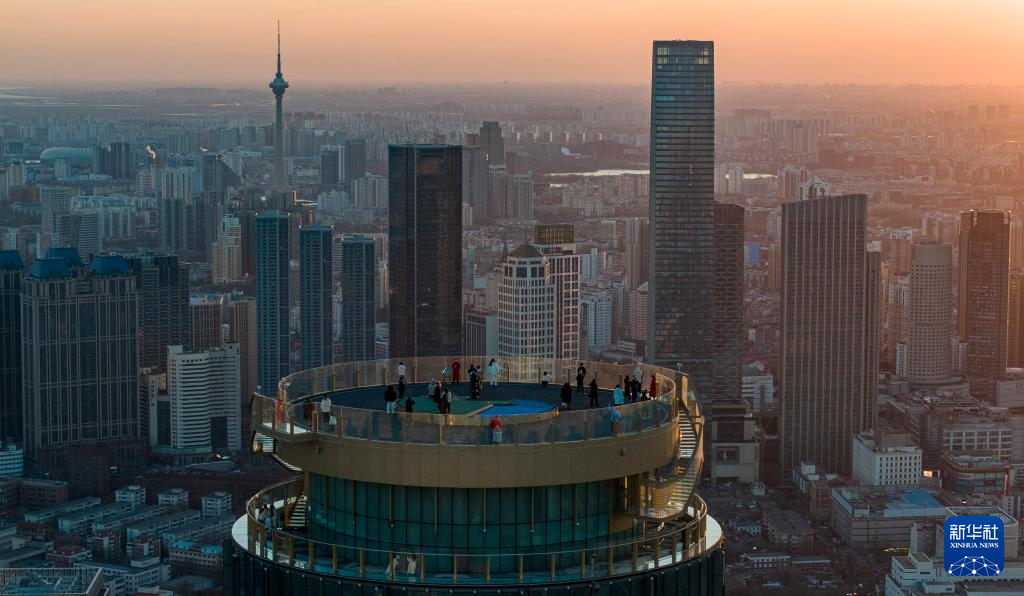 近日,位于天津市和平区津湾广场核心位置的津湾云顶高空观景台开始运营。游客可以登上300米高的楼顶,俯瞰天津中心城区。