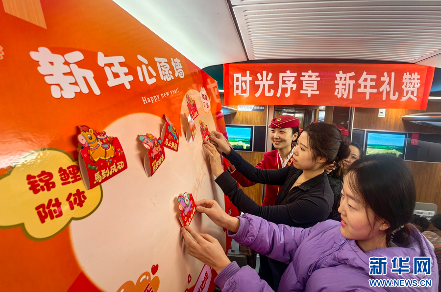 12月30日,乘坐C2026次列车的旅客参与互动,写下新年祝福。新华网发(杨宝森 摄)pagebreak