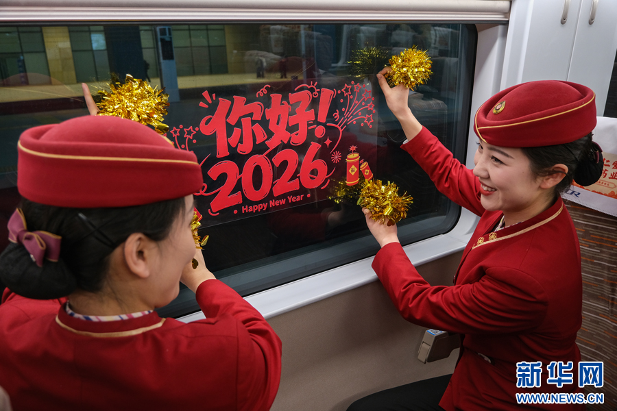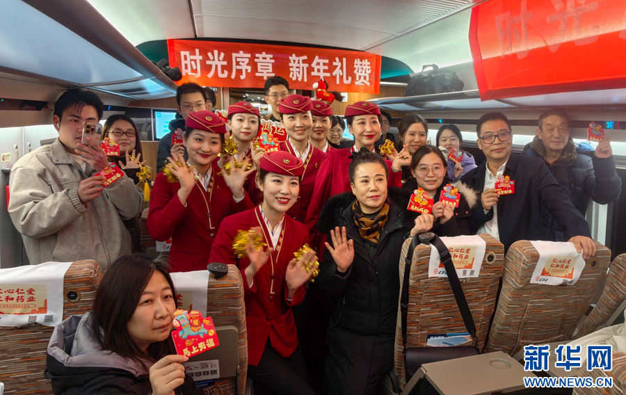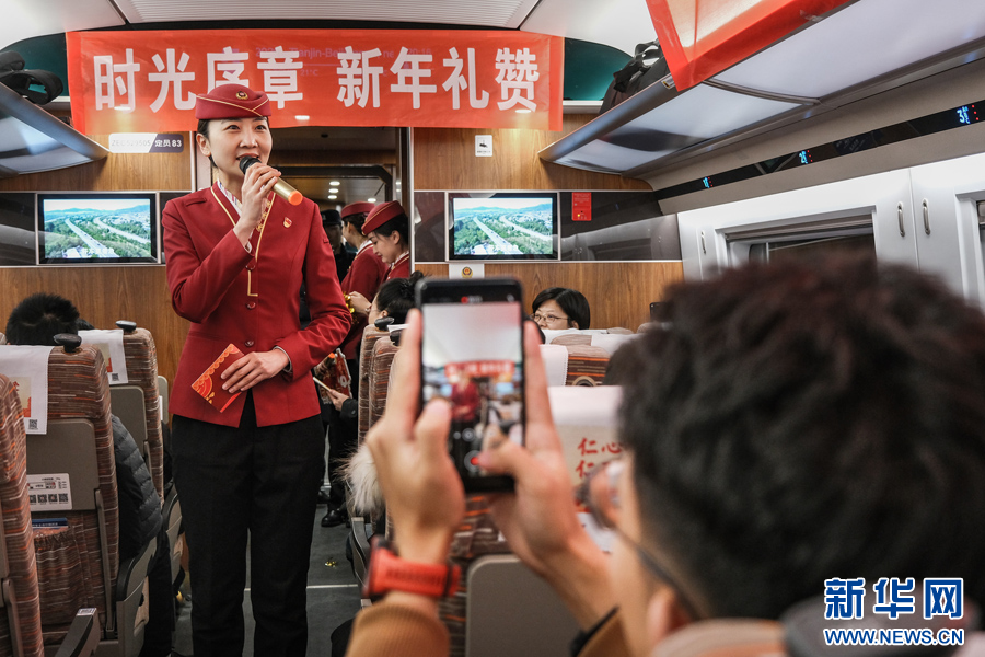 12月30日,C2026次列车上正在进行的跨年辞旧迎新主题活动。新华网发(杨宝森 摄)pagebreak