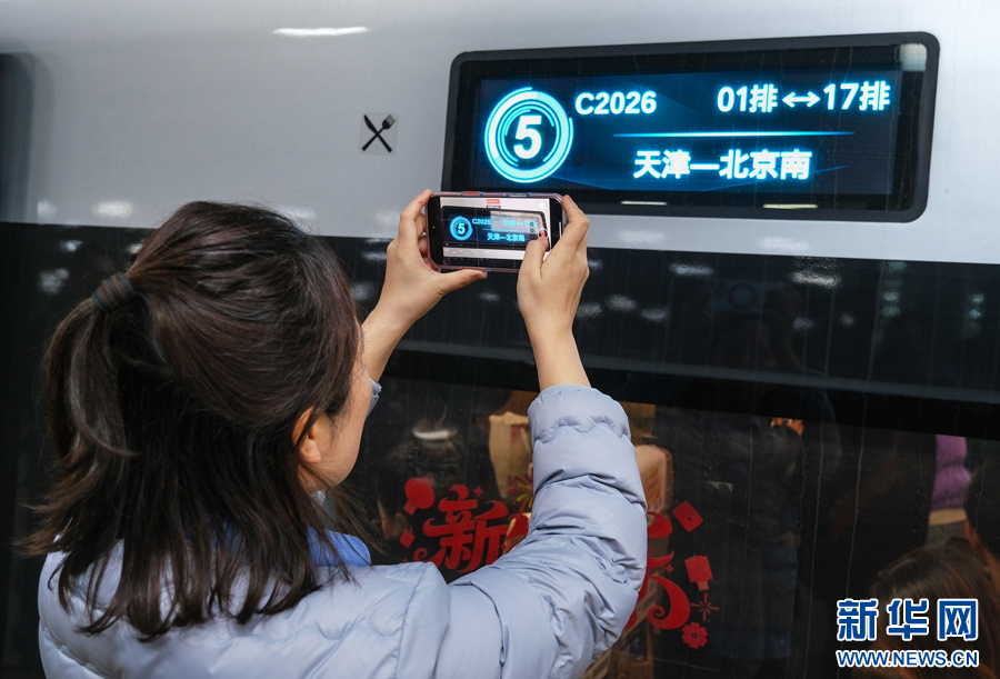 12月30日,由天津开往北京南C2026次列车在天津站等候发车。新华网发(杨宝森 摄)
