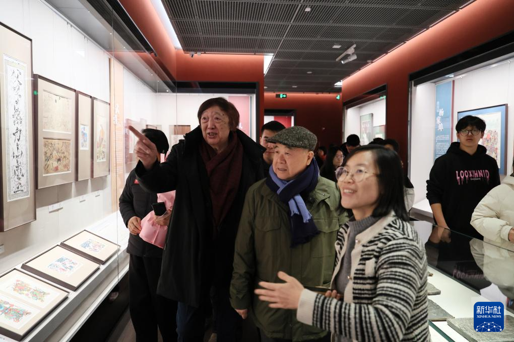 1月8日,莫言(左四)和冯骥才(左二)在天津大学冯骥才博物馆参观交流。新华社记者 李然 摄pagebreak