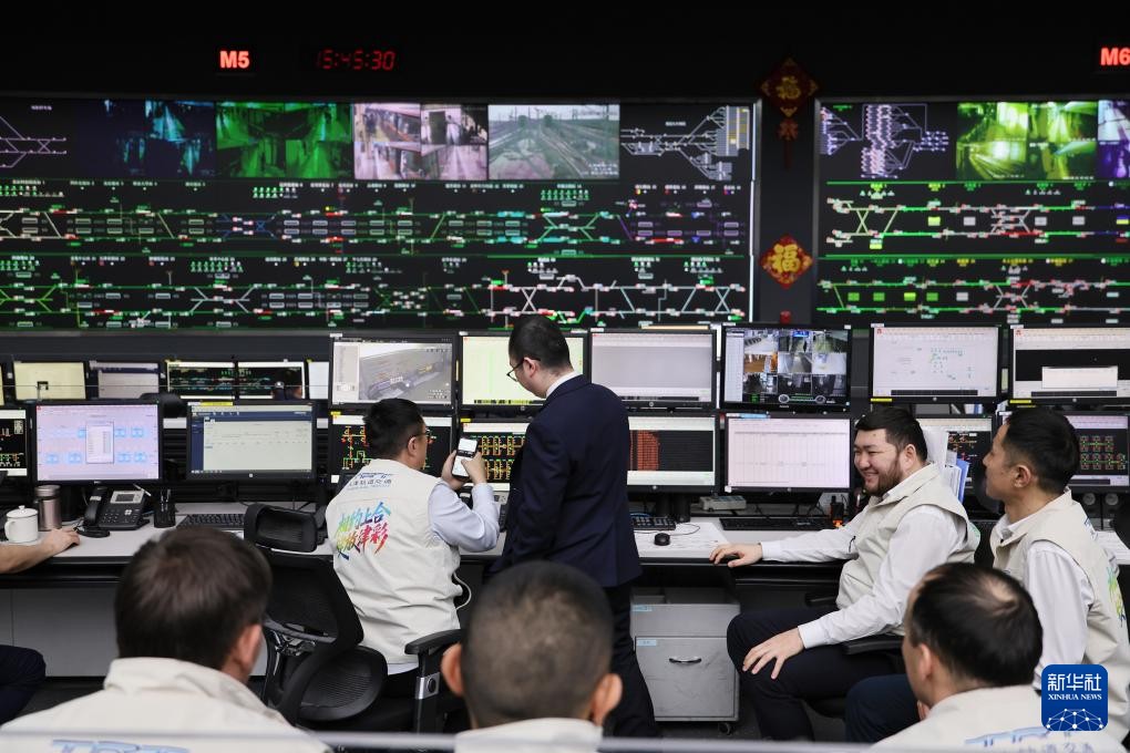 1月23日,哈萨克斯坦学员在天津轨道交通集团调度指挥中心学习。新华社记者 李然 摄pagebreak