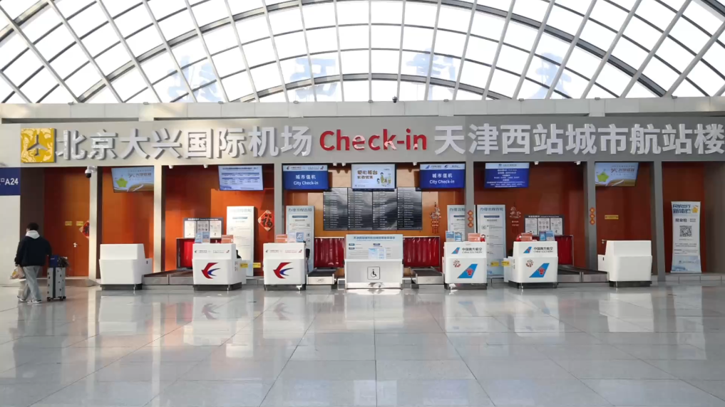 据悉,该城市航站楼于2025年6月建设完成投入使用,是京津冀地区首座设置在国铁枢纽站的城市航站楼,设有6个值机柜台,可以办理值机、行李托运等业务。