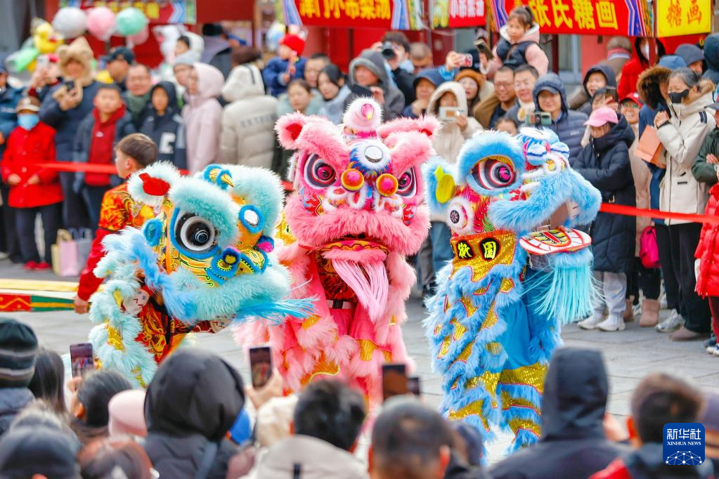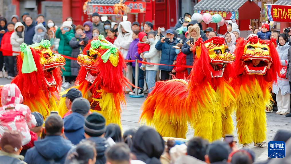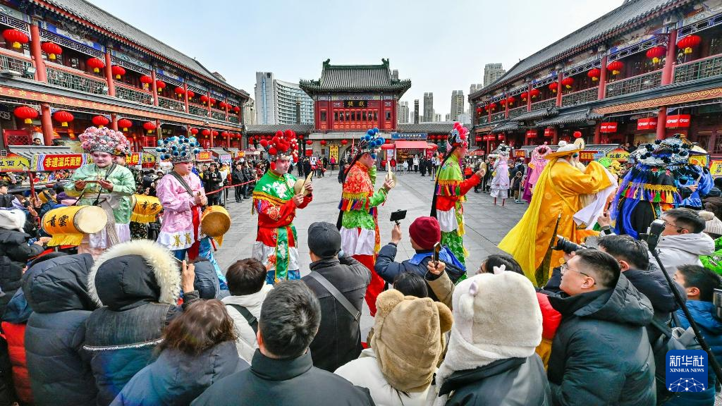 2月15日,游客在天津古文化街观看民俗表演。新华社发(杜鹏辉摄)