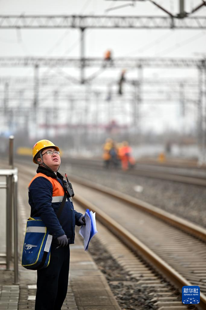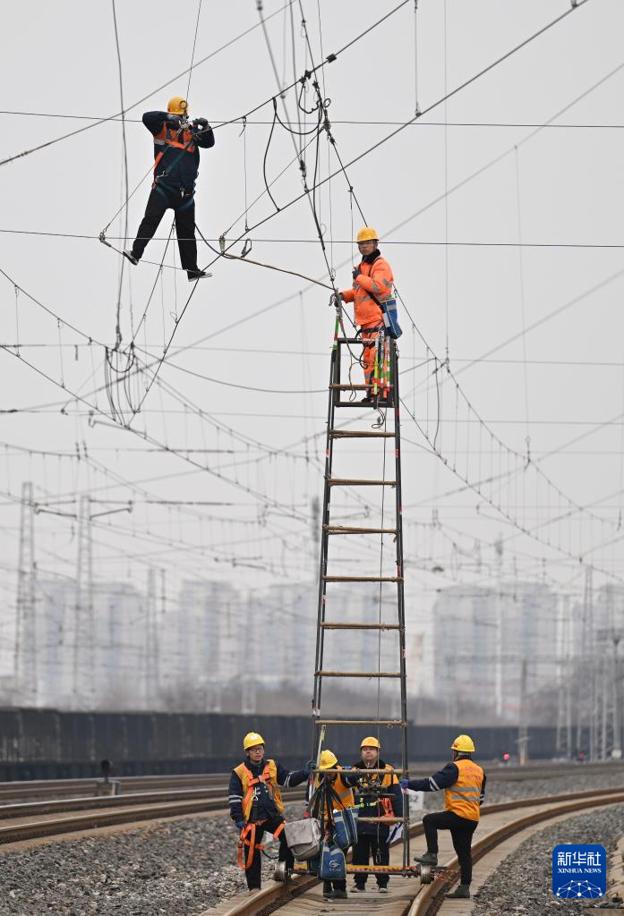 3月14日,工作人员在津山线军粮城站进行作业。新华社记者 李然 摄pagebreak