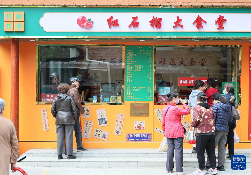 4月14日,社区居民在红石榴大食堂就餐。新华社记者 李然 摄