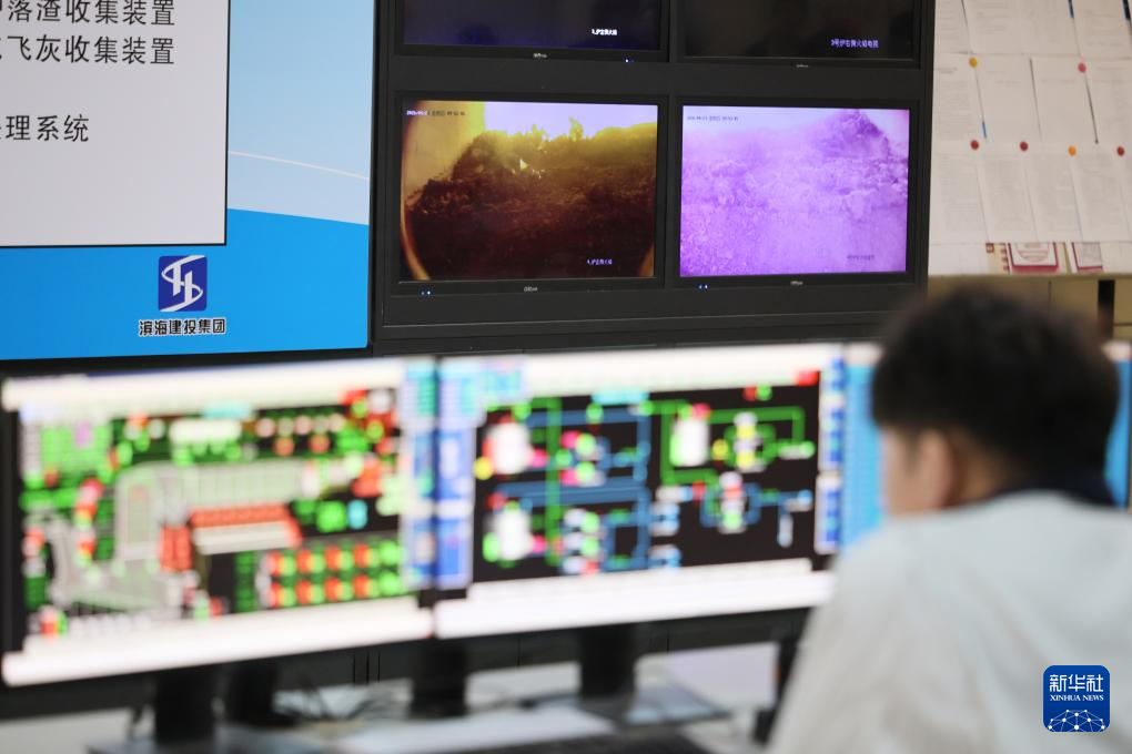 4月23日,工作人员在天津滨海新区循环经济产业园垃圾焚烧发电厂中控室工作。新华社记者 李然 摄pagebreak